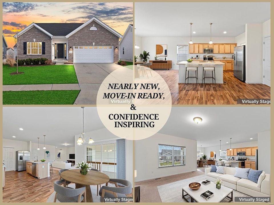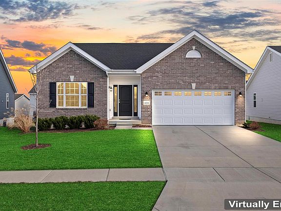 Get ready to fall in love with this beautifully crafted, three-year-young ranch home that’s conveniently located just five minutes from Highway 40/61! Step inside & experience the airy, open concept living space enhanced by soaring 9-foot ceilings. Entertaining is a breeze in the ample kitchen, complete with a large center island, breakfast bar, and refreshed cabinets highlighted by elegant crown molding & sleek new hardware. You’ll adore the huge walk-in pantry for all your storage needs, as well as the spacious dining area featuring a charming bay window. The primary bedroom is a true haven with its stunning tray ceiling, walk-in closet, plus an extra bonus closet for added organization. The en suite bathroom impresses with its large solid surface vanity, & a step-in shower enclosed by graceful glass doors. Downstairs, an unfinished lower level with egress window awaits your personal touch—add even more living space or build future equity. Don’t wait—this home won’t last long!