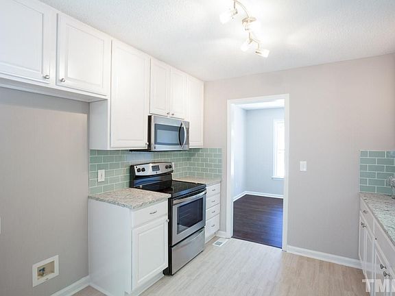GORGEOUS One Level Living in the HEAT of Garner. Features a bright open floor plan and upgrades galore including a custom designer kitchen with granite, glass tile back splash & Stainless Steel appliances. AMAZING master suite with cathedral ceiling and WIC closet. New EXOTIC 5 inch Bamboo hand scraped flooring; NEW plush carpet & designer paint. Backs to trees for great privacy! Convenient to Downtown Raleigh, Walnut Creek and 440. Move in and enjoy!