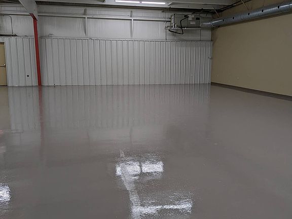 This large warehouse includes 3,000 square feet of warehouse space and 750 square feet of office space. The office suite has two large offices along with a receptionist area. The warehouse floor has a hardened polymer coating, and the unit has had a full new paint job in the office and warehouse. The warehouse and office have central HVAC to stay cool in the summer and warm in the winter. This space would be great for a smaill business that needs room to store tools and materials. The front overhead door allow for easy loading and unloading of trucks. Large enought to safely park your company vehicles inside during the night. It would be a great space for someone's car collection. The new floor coating cuts down on the amount of dust floating through the air.