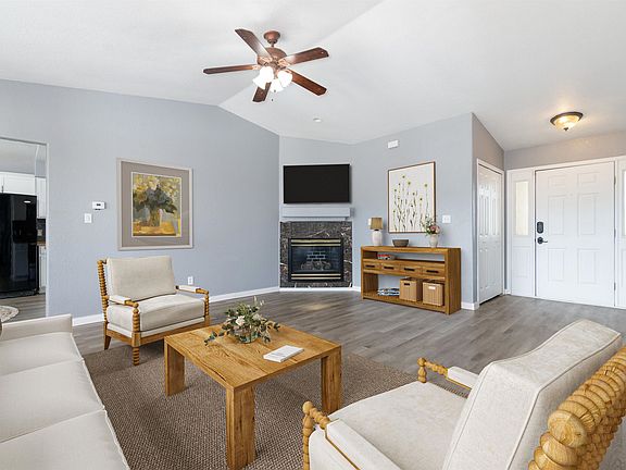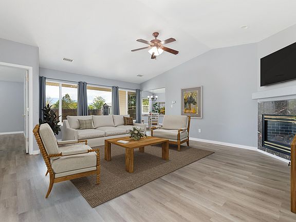 Gorgeous new vinyl plank flooring throughout! Flooded with natural light, this 3 bed, 2 bath, 2 car garage home has beautiful views of the Grand Mesa from the large living room windows and back yard. The large primary bedroom has an attached bathroom and walk-in closet plus a private door to the back patio. The spacious kitchen and dining room offer plenty of entertaining space. Central air, vaulted ceilings, gas fireplace, laundry room with washer & dryer are a few of the other highlights of this delightful home. The backyard is waiting for your fire pit to enjoy evenings on the patio or under the pergola. Schedule your private showing today!