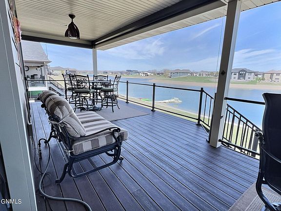 Attention to detail is evident throughout, from the beautiful stone fireplace to the remote-controlled blinds on the deck, offering you many conveniences. As you wrap up your thoughts at the end of a long day the best place is overlooking the panoramic views stretching beyond the water to the hills, with Fort Lincoln in the distance, adding a touch of history and natural beauty.