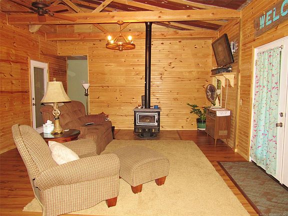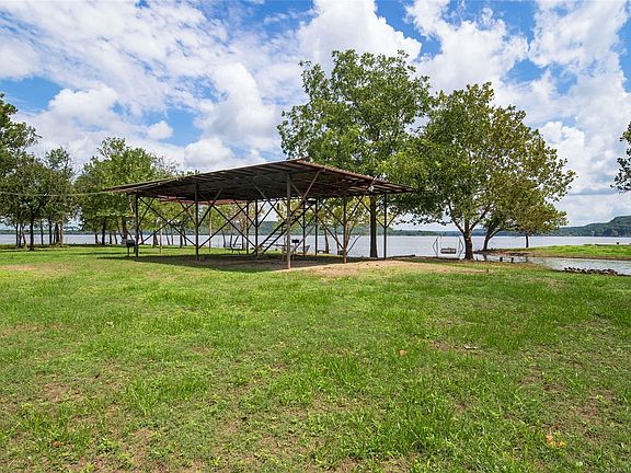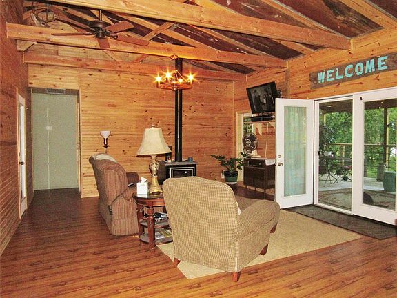 Perfect location for a VRBO, RV Rental or Bed & Breakfast.This rustic style waterfront home sits on 2 +/- acres. All appliances stay. Views of the lake from the living rm, master bed & kitchen. Entertainers kitchen w/island. Beds 2 & 3 has Jack & Jill bath. Indoor stairs case takes you downstairs to the garage. Also great place to leave your lake toys. 30x15 wraparound balcony with breathtaking views of the Lake. 2 RV camper sites, lg pavilion, electric & grills are located next to the lake.
