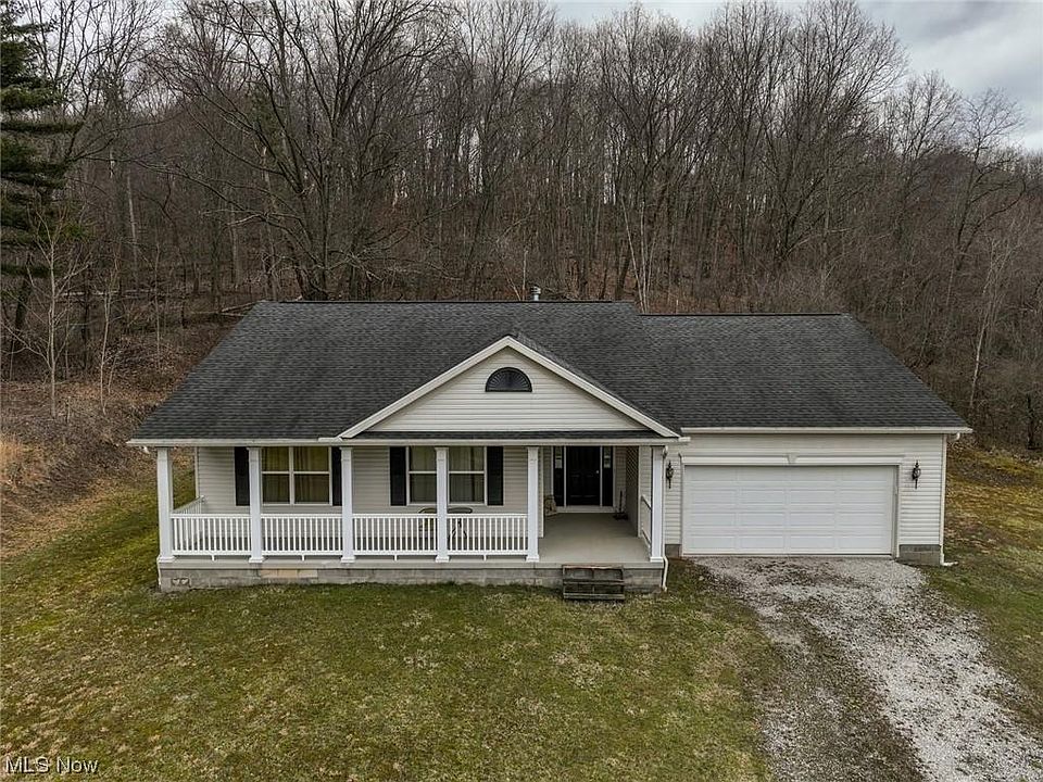 Serenity and privacy await in this beautiful 3 bedroom, 2 bath ranch situated on 4 acres. Large kitchen with center island, stainless steel appliances, and large dining area opens to great room with brick fireplace. Huge master bedroom with en suite with double sinks, soaking tub, and separate shower. 2 additional large bedrooms. First floor laundry. Inviting front porch with picturesque views. 2 car attached garage plus 2 car detached garage. 12x8 shed. A wonderful opportunity to make this tranquil sanctuary your home!