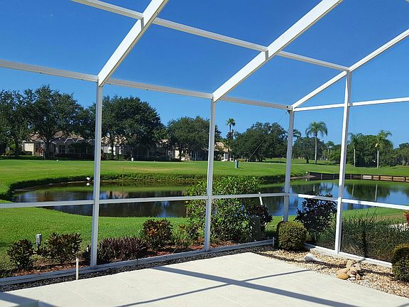Wonderful Home in Peridia overlooking the 4th Hole and a Pond! Move right into your Furnished Home! Relax in the Nice Pool and Entertain on the Large Lanai! There are two other patios as well, which would be great for the BBQ off the Kitchen! The Tile Roof has been replaced in the last couple of years, along with beautiful Porcelain installed throughout the Living, Dining, and Kitchen! Walk out to the Lanai from the Spacious Master Bedroom, which has a Walk-In Closet, Sunken Garden Tub, Dual Sinks, and a Private Commode and Shower. Enjoy the Open Living Room with Vaulted Ceilings, Ceiling Fan, and Built-In Bar/Buffet. The Split Plan has the Second Bedroom and Bath on other side of home with the Third Bedroom/Den conveniently located off the Living Room. Good-Sized Kitchen with nice Island for Entertaining and a spacious eating area, along with a Pantry, Laundry Closet, and a separate Patio. The Exterior has been very well maintained with nice Landscaping and Newer Tile Roof. Come and Enjoy all of the Activities that Peridia has to offer! Member Rate Golf and Member Golf Tournaments on many Holidays, Friday Night Dinner Dances, Aerobics, Water Aerobics, Pickleball, Tennis Courts, and Bocce. Enjoy the Clubhouse and Lounge with a $450 Annual Food & Beverage Minimum! The Peridia HOA Dues are billed Quarterly at $648, along with the Murfield HOA fees of $268/Quarter. There is a One-Time Capital Reserve Fee and a $100 Application Fee. Move Right into your new Home!
