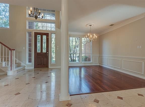 BACK ON MARKET Young at heart. Beautiful Brazilian wood engineered flooring in living, dining and family rooms. Secluded master suite with garden bath on first floor, featuring oversized shower, rubbed bronze fixtures and lights ,marble vanities. 3 Spacious bedrooms upstairs and 2 baths. Charming breakfast area overlooking back yard which is larger than most in area. New carpet, entry tile, kitchen appliances. ALL AMENITIES OF ADDISON