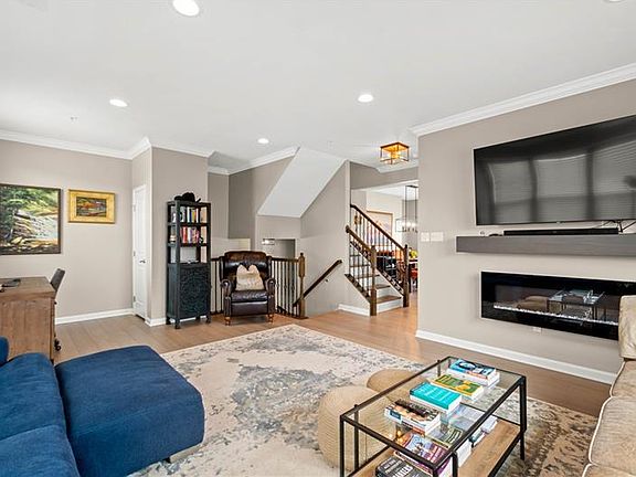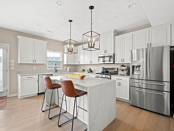 This end-unit townhome in Overlook at Southpointe has received so many high-end upgrades since it was built 5 years ago. The end result is absolutely stunning! The kitchen is a dream with SS appliances, leathered Quartzite counters, a waterfall island, and a nice-sized pantry. The open concept main floor, as well as the lower level, feature gorgeous Bamboo flooring. The huge Trex deck is great for entertaining. Master suite features a custom walk-in closet and large en suite bathroom. The finished basement has a custom bar and access to the lower patio. Trendy light fixtures and hardware throughout the home give it an element of style. The flat yard space is a huge bonus for kids or pups. This home has it alleven a hook up in the garage for an electric car! Very social neighborhood with low monthly HOA fee that includes grass cutting, mulching, and trimming. Get ready to enjoy some maintenance-free living!