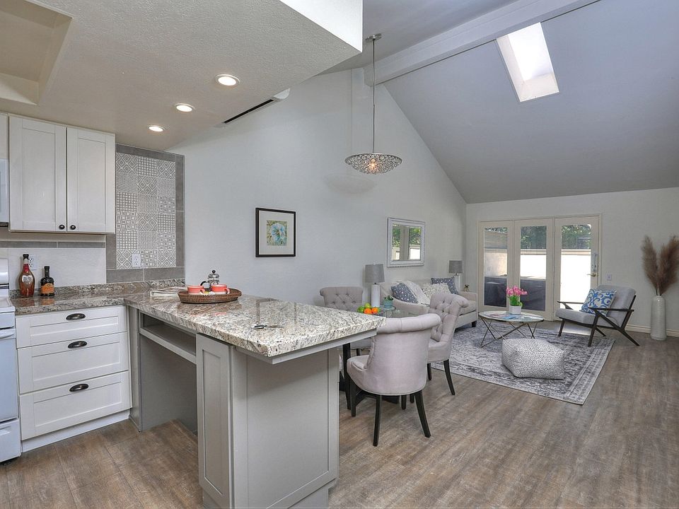 Beautifully updated 2 bedroom condo that is conveniently located to town. This 2 bedroom and 2 bathroom home has all that you need to make this house your home. Updated kitchen, bathrooms, flooring with vaulted ceilings. This unit has the largest extended patio of any unit in the complex. All utilities Is Included in the rent