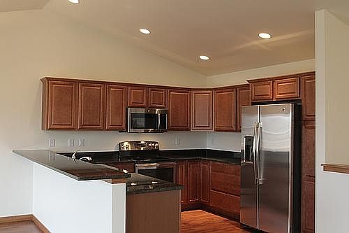 New Construction - Partial walk-out ranch home, 4 bedrooms, 3 baths, deck and patio. The kitchen has a raised breakfast bar and is open to the living room and dining area. Main level laundry has it's own room. The master has a tray ceiling, walk-inc closet and private bath with dual vanities. The lower level has a huge 32'7" x 17'9" family room, a bedroom and a bath. It's also possible to add a 5th bedroom in the basement if needed. A nice home with a large of amount of finished space for