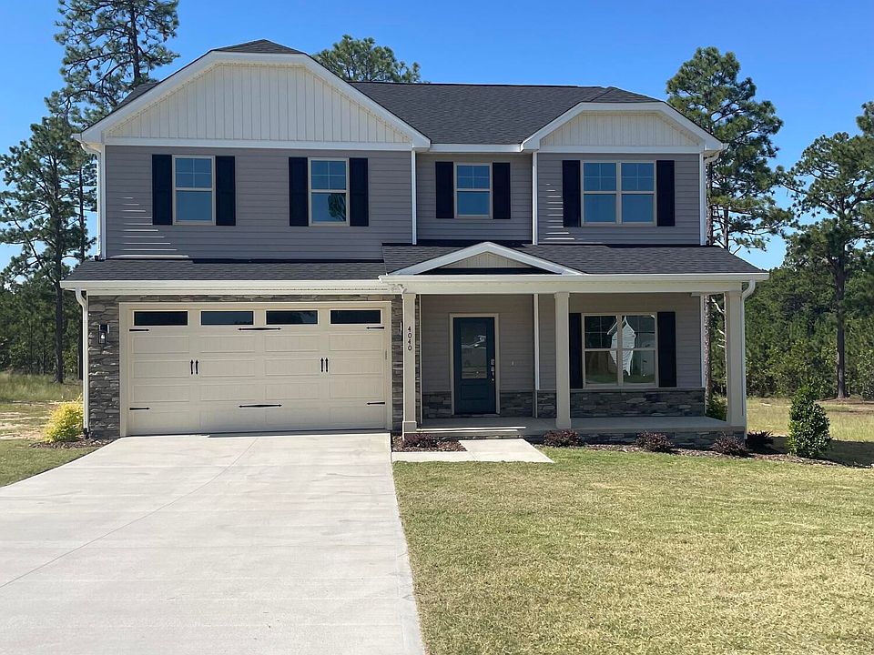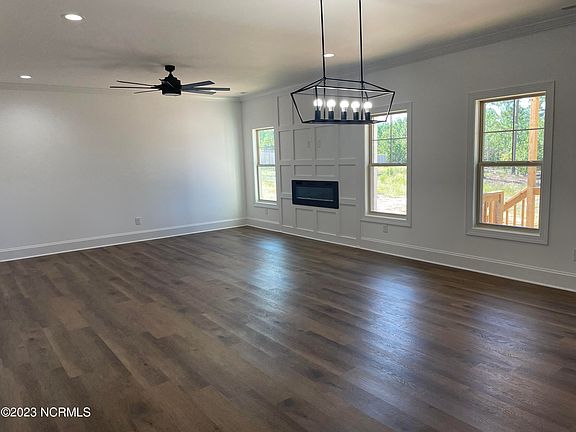New construction in gated community Gretchen Pines! This 4 bedroom, 4 bath home is full of character and design. On the first floor you'll find open living spaces, lots of natural light and 9ft ceilings. There is an office with glass doors off the foyer upon entering the home. The kitchen, dining and living room are open making it the perfect home for entertaining. The kitchen features energy star stainless steel appliances, shaker cabinets with a large island, soft close drawers, hidden trash bins, floating shelves, farmhouse style sink, quartz countertops, modern tile backsplash and a spacious walk-in pantry. The living room features a large ceiling fan and an accent wall with an electric fireplace. Drop zone area off the garage entrance. Full bath downstairs. Beautiful, durable LVP throughout the downstairs. Recessed lighting through the home. Upstairs you'll find the Owner's suite, 3 guest bedrooms, 3 full bathrooms and the laundry room. The owner's suite is very spacious and the ensuite bath has a huge, spa like walk in shower. Large walk in closet with lots of storage. One of the other bedrooms upstairs features an ensuite as well! The other two bedrooms share a full bath from the hallway. The covered back porch extends to a deck which makes it perfect for grilling and outdoor entertaining. Over half acre lot! HIGH SPEED FIBER INTERNET is available in Gretchen Pines. Quick drive to Pinehurst, Southern Pines and Fort Bragg. Estimated to be complete mid-end July.