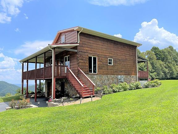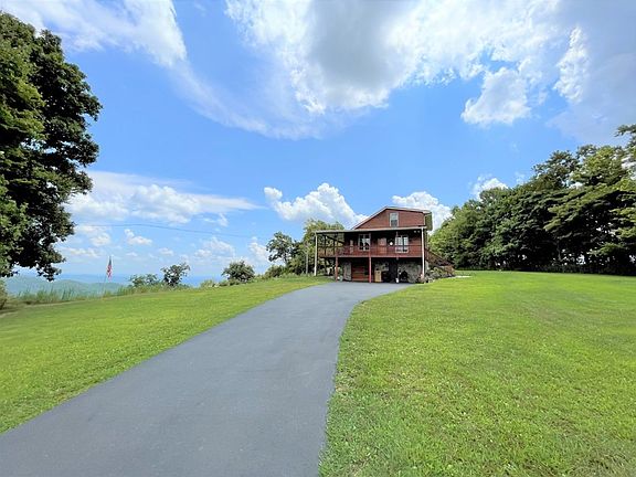 Log Home on 3.5 acres with a Blue Ridge Mountain View. Home features: 1428 sq. ft., 3 Bedrooms, 2 Baths, Open floor plan, on the main level you have a living room with hardwood flooring, gas log fireplace and a great view, large kitchen with hickory cabinets and appliances conveying and dining area, master bedroom and master bath with a tiled shower and laundry room. On the upper level you have 2 bedrooms and a bath. Home also comes with an unfinished full basement. 848 sq. ft. of covered porches for enjoying the long range mountain views. Land features: 3.5 acres with views and rolling to sloping land, gated entrance, paved drive and a fire pit area. Located near the Blue Ridge Parkway, goft courses and local wineries.