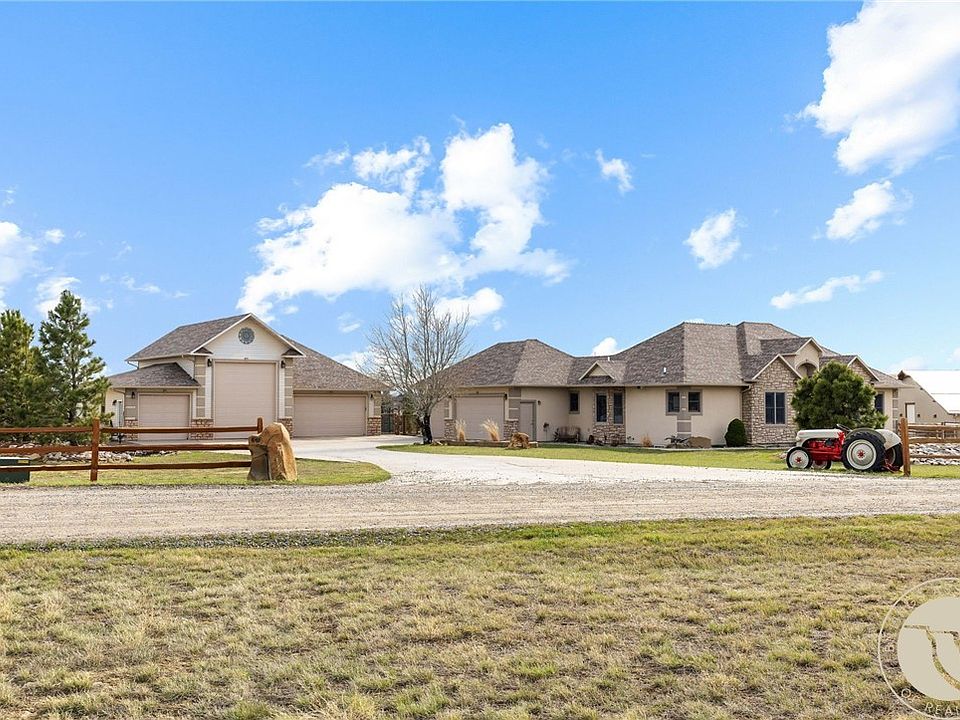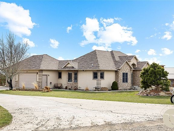 Comfort, luxury, space. Enjoy beautiful views & open skies over a timbered canyon in this Montana country home with over five acres. The interior features a stunning new kitchen from Hanneson Homes with an huge island, coffee bar, quartz tops, soft close cabinets, all new appliances with six burner gas stove, an open-dining living space with tile and wood floors and a gas fireplace, a main level owners' suite with a tile shower and dual sinks, main level laundry and a private patio. In the lower level you'll find a second family room with a gas fireplace and new flooring, a kitchenette, a large bedroom & additional bathroom, fitness/multipurpose room, & office/workspace. Tons of parking! Attached three car garage plus a giant triple bay shop with RV door & loft storage. (Floor is prepped for radiant heat.) More parking, a pond, & a greenhouse! In a gated community outside of Billings!