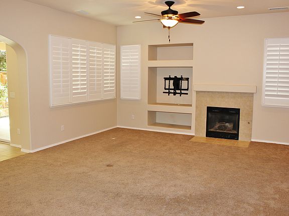 Your spacious retreat awaits in the gated community in the European Grove. This 3 bedroom/2 bath features wooden plantation shutters throughout. The great room boast high ceilings, with a fireplace, and you can enjoy the open kitchen and dining area. The kitchen island offers additional seating, you can enjoy the built-in desk, plenty of storage, and easy access to the rear yard. The master bedroom is a great space equipped with ceiling fan; master bath has sunken tub and shower, and a large walk-in closet. Bedrooms 2 & 3 are just around the corner and share the hallway bath with shower/tub. Backyard is relaxing with cement planters, trellis, and syn lawn at the rear. Don't miss this gem.