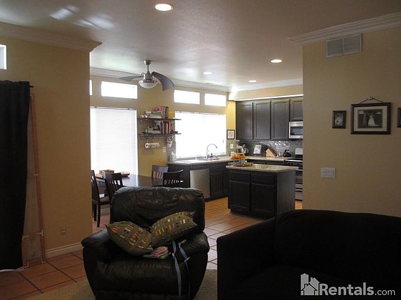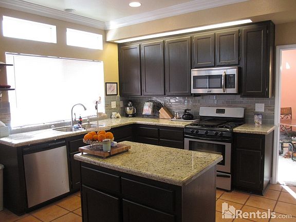 Temecula 4 Bedroom (with one bedroom and bathroom downstairs). 3 Car Garage! with some wall cabinets. Kitchen with granite countertops and glass tile backsplash. Open to breakfast nook and family room. Formal Living / Dining area. Downstairs laundry room with sink. Master bedroom with vaulted ceilings and ceiling fan, fireplace, his & hers closets. Back yard has covered patio and built in BBQ. Landscape maintenance included. Available April 8th or later. Showings by appt. Call for more details or to set up a time to view.