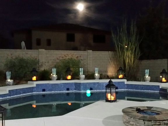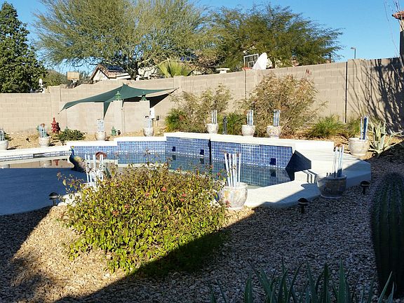 custom honed slate/stone/cracked glass gas firepit, pool with water shears and tile art image inlays, artificial turf lawn, garage carriage lights on programmed dusk to dawn timer, solar malibu lights front / back, motion dectector security spotlights, step stone pathways, custom landscaping with timer irrigation drip system, front courtyard, fountain, oversized half-acre lot (.27 acre), inside custom pendant contemporary lighting, led energy saving bulbs throughout home, reverse osmosis drinking / ice water, two air conditioning units, soft water system, custom garage cabinets in both the double garage and single garage, upgraded carpet / tile, custom cool pool deck, pool equipment wall with sun sails, wired alarm system, remote ceiling fans throughout, house professionally repainted outside in entirety 2013, interior repainted with accent wall colors, home office, solar screens on outside windows, property faces no home for privacy, pristine community park located diagonally across from home, located a few blocks from St. Rose Catholic Church. Original owner since built from the ground up. Great neighbors surrounding property, quiet upscale neighborhood well maintained streets and well lit with street lights, close to shopping, drug stores, grocery stores, premium outlet mall, Hilton hotel, doctors and our beautiful Anthem Community walking trails throughout Anthem, Anthem Community Park - fishing pond - community center gym (membership free for home owners) - sporting fields - outdoor festivals - outdoors music concerts - carnivals - farmer's markets - train ride etc. Anthem is only an hour to beautiful Prescott, Sedona & 2 hours to Flagstaff / snow & then the Grand Canyon! Anthem is also a short 4.5 hour drive to Las Vegas & 6.5 hour drive to the beaches of California. All in all...Anthem is a Del Webb master-planned community voted one of the best places to live in the U.S. and for many reasons as you can see described here .... Anthem is a true "sanctuary & oasis" in the desert! No wonder it is 10 degrees cooler than Phoenix headed up north just 15 minutes from the 101 freeway! Paradise!