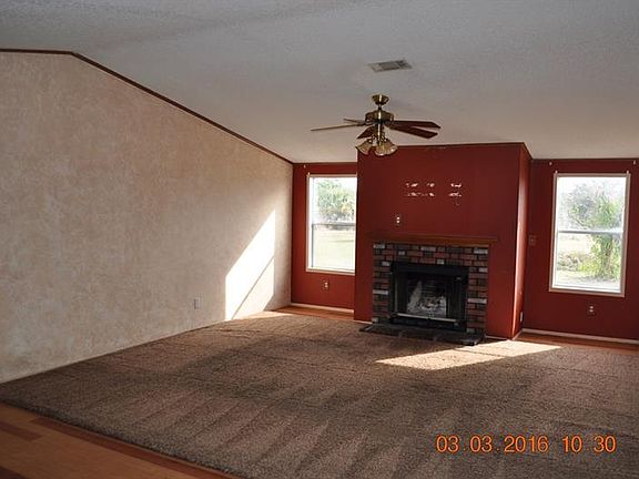 3/2 DW Manufactured Home on 4.75 acres of land! Gated driveway, fenced yard with outbuilding/barn. House features inside laundry, island kitchen with plenty of cabinet and counter space, a living room/ dining room combo with wood burning fireplace.