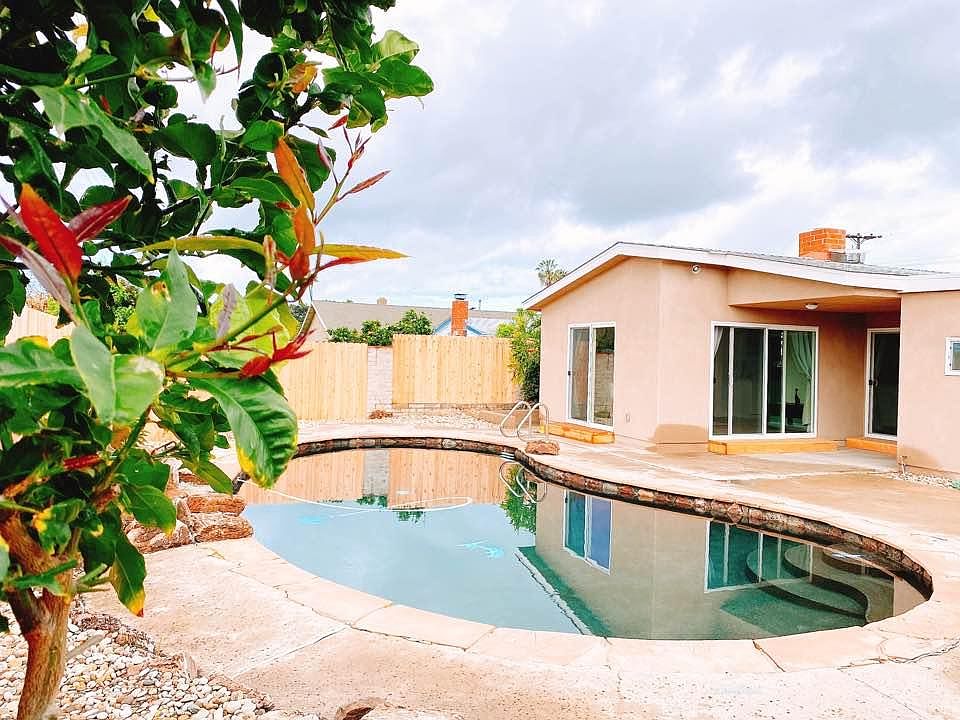 WOW, almost says it all. Brand New Remodeled 3 bedroom 2 bathroom Single level house. Beautifully remodeled and fully furnished property is perfect for anyone who likes to entertain or enjoy the convenience of Clairemont and the nice things in life as well. Gorgeous home with an amazing pool, fireplace, modern decor, open floor plan, vaulted ceilings, family room, large dining room, new Kitchen, new Bathrooms, new appliances, new Flooring, new HVAC & large laundry +extra family room equipped with everything needed for a fantastic stay in Sunny San Diego! Owner pays for Pool Service, Gardening, Sunrun(Solar energy). Renter responsible for gas, electric and water. No sublet, No Airbnb, No Party. Up to two small dogs permitted.