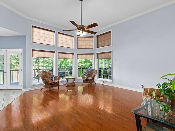 This is a beautiful one-of-a-kind custom home built on almost 3 acres! Unique split floor plan boasts soaring 12' ceilings and hardwood floors. Open concept kitchen with stainless steel appliances, eat-in kitchen with separate dining room or den. Beautiful wrap around deck looking onto backyard with french style door leading into Primary Bedroom with its 15' vaulted ceiling! Primary Suite has dual vanities and dual walk-in custom built closets with one closet having its own window, custom shelves and private exit into garage making it a perfect office space! Great walk-in crawl-space with cement pad and light. Beautiful and spacious garage with tall windows and great storage above with potential for more! Wheelchair accessible doorways throughout house.