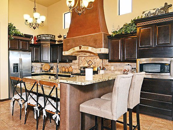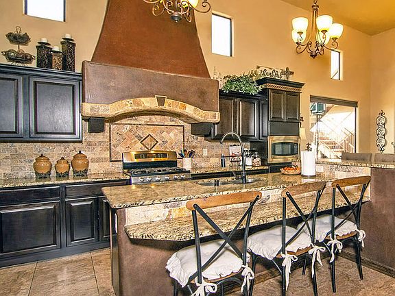 This is the home for you if you're looking for a place to call home and make great memories! This custom home offers some of the highest quality features a home can have crafted with luxurious details. Kitchen boasts granite counters, custom cabinets, large island, stainless steel appliances, skylights & gas range. Some of the features through out include, blinds, tile, Faux paint, surround sound w inset speakers, fans, security system, amazing views and full wet bar! Each bedroom has it's own walk in closet and bathroom. There is an open floor plan with split bedrooms. In the ample master suite you will find 2 walk in closets, double vanities, jacuzzi tub, skylight and glass French doors to the outdoor patio. The pristine back yard includes a 4.5 ft. swimming pool with an electric cover, gas fireplace, viewing deck, covered patio, outdoor kitchen/living and a casita/pool house with shower in the bathroom. There is NO HOA!