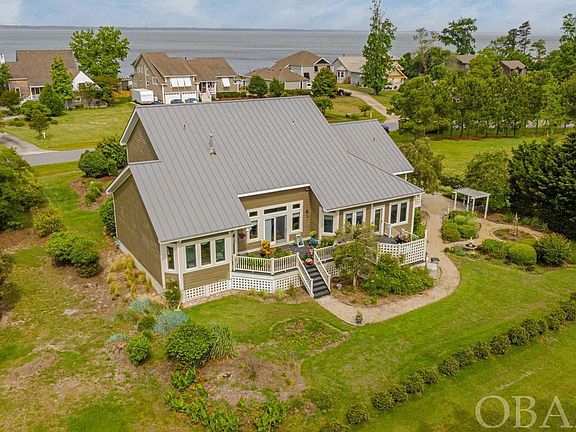Welcome to your coastal dream home in Martin's Point on the Outer Banks! This exceptionally well built three-bedroom residence offers everything you could want in a home and the semi-soundfront location provides views of the Currituck sound.  As you step inside, you'll be greeted by an inviting and light-filled living space. The open floor plan seamlessly connects the living room, dining area, and kitchen, creating an ideal setting for both entertaining and everyday living.  The well-appointed kitchen is perfect for the home chef, boasting beautiful solid wood cabinetry and natural gas range. The first-floor master bedroom suite features a spacious bathroom with a custom tile shower, garden tub and a large walk-in closet.  Upstairs you will find the two remaining bedrooms, one with an adjoining bathroom and bonus room that is currently used as a craft room but has many possibilities such as a kids play room. Just down the upstairs hallway you will find the sizable room over the garage that also has many possible uses.  Outside, the meticulously maintained landscaping enhances the curb appeal and creates a serene outdoor retreat. Whether you're enjoying a morning cup of coffee on the front porch or hosting a summer barbecue on the back deck, the outdoor spaces are designed to be enjoyed. You are sure to fall in love with this home and the wonderful community of Martin's Point.