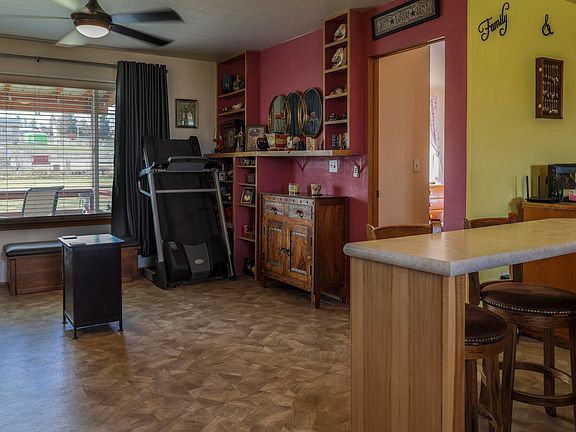 Darling Stevensville home situated on 1 acre, offering amazing Bitterroot Mountain views! You will appreciate the open kitchen, dining area and living room, which features built-in cabinets and shelving. The back porch has been enclosed and now provides warmth from the pellet stove and extra living space. The home is currently a 2 bedroom, 2 bathroom with an office that once was a bedroom and still has a closet. Could easily be converted back. Recent updates include the newly attached 14x28 finished garage, asphalt in the driveway, front gate, metal roof, new electrical panel, refurbished dishwasher, on-demand water heater and new well pump and motor. There are a total of 4 outbuildings. The one set up as the shop has power and is ready for a pellet stove. Enjoy the amazing views and privacy that the back deck and backyard offer. Underground sprinklers, maple trees, garden area, landscaping, the completely fenced parcel and a pond with gold fish are just some of the extras on this one acre piece of property! The septic permit is for a 3 bedroom layout and the well produces 20gpm. 2022-08-02