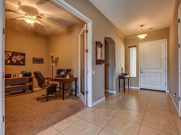 This home has room for all with its 3066 sq ft all on one level. Four bedrooms, four bathrooms plus an in-home office with glass french doors make this home a dream to live in. Ceramic Tile floors in all living spaces with carpet just in the bedrooms. Expansive and well appointed Kitchen with large island and casual dining also boasts double wall ovens, gas cooktop,granite counters and built in desk. This opens into the family room with backyard access. Formal living with gas fireplace and dining are combined for multiple entertaining areas make this a true party house. 10 ft ceilings throughout with 8ft doors give the home a luxurious feel. Backyard features extensive hardscape, turf, raised bed gardens and built in fire pit. Enjoy your evenings here as it is shaded in the evenings