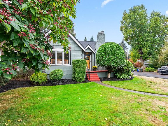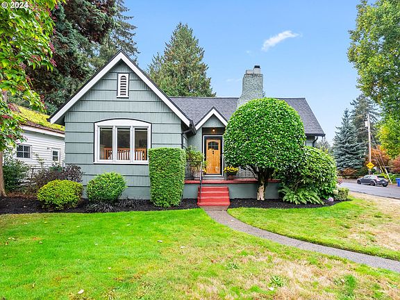 Good things come to those who wait, as evidenced by this classic 1930 Maywood Park beauty. Original vintage charm throughout featuring idyllic hardwoods, gorgeous green-stained wood grain doors & molding, windowed closets, hex tiled bathroom floor, picture rail molding for days all wrapped up into a spacious and inviting floorplan. Huge full basement awaits your creative juices. Updates: central A/C, gutters, downspouts, exterior paint, stove and plumbing repiped with 3/4" flextube. Newer African grain mahogany French doors leading to a private outdoor haven boasting year-round color, playful hummingbirds, extremely happy hydrangeas, mini-rose garden, stamped concrete patio, enclosed dog run, and...wait for it...the only Barney the Dinosaur shaped juniper shrubbery West of the Mississippi! Spacious corner lot with parking and garage off of side street NE Mason. Close to Prescott Elementary, The Grotto, public transport, Rocky Butte State Park, PDX, I-205/I-84. All of this AND a purple Barney bathtub to boot! Welcome home!