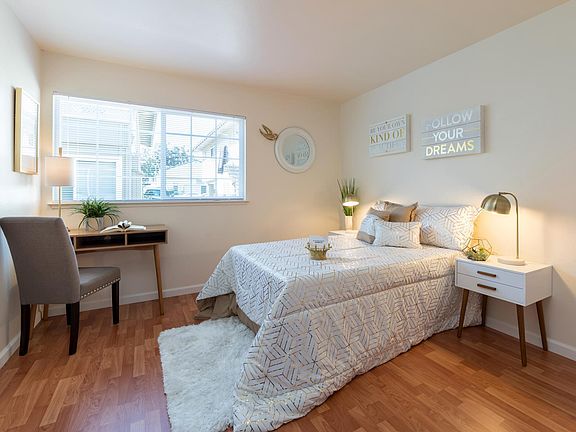 Move-in Special! $1000 off first full month's rent with lease start date of December 15 or sooner. Beautiful and spacious apartment! Enjoy the privacy of fourplex style living where each beautiful apartment home is a corner end unit! Wood laminate flooring. Air conditioning unit. Large bedrooms. Walk-in closet in master bedroom. Dual pane windows. Located in the heart of Fremont near shopping, restaurants, and transportation. So convenient! Walk to Brier Elementary school! Near BART. Upstairs apartment. Virtual tour or in-person, socially distant, tours of this apartment are available! Amenities include: Sparkling pool Children's playground 2 complete laundry facilities Attractive greenbelts Excellent location in the center of Fremont--very convenient Walking distance to Fremont Hub and Fremont Plaza shopping centers. Near BART, Washington Hospital, Kaiser Hospital, and Restaurants. Square footage is approximate and does not determine rental rate. Staged photos are of similar unit. Call today for more information! Park Villa Apartments Professionally managed by Premier Properties DRE License#01057250 Application fee $25 per each adult.