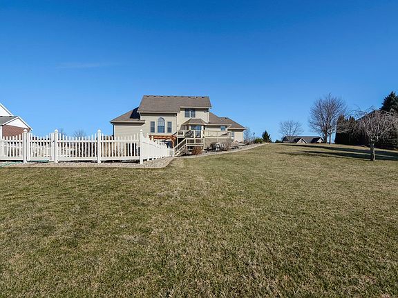 Sometimes you can have it all! This beautiful custom home has the coziness of neighborhood living yet the peaceful serenity of country fun. Enjoy views of a stocked pond and its fishability, as well as the option of having coffee, wine, or dinner outdoors with family and friends while overlooking an inground pool. Just when you think the views take the cake, step back indoors to entertain with an expansive living room and eat in kitchen all while enjoying the warmth of the double sided fireplace. The front room can be used as an optional dining room or an in home office-whichever best suits your lifestyle. Upstairs boasts two large bedrooms with walk in closets as well as a full bathroom. Yearning for more livable space?? Find your way to the fully finished walk out basement. Theres nothing about this space that feels like a basement with a full wall of large windows, plenty of living room/entertainment area, and a separate enclave that could be used for a pool table, arcade machines, or bar area. You'll also find a large bedroom with a walk in closet and full bathroom. Want an in home gym? There's also a separate room being used as a gym, but it could be yet another bedroom. Last, but certainly not least, retire to the main floor master en suite. Enjoy a bath or shower in the huge master bathroom. Don't worry about being chilly because the floor has radiant heat, and there's a double sided fireplace between the bedroom and bath. This is truly a dream home.