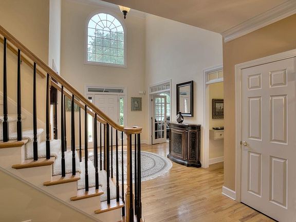 - Interior: 10 ft+ Ceil Main, 2-Story Foyer, Double Vnty Other, Entrance Foyer, Trey Ceilings, Wall/Wall Carpet, Bookcases