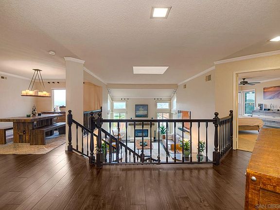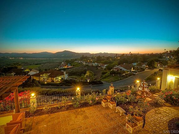 Take in the spectacular views in this immaculate, updated, open and bright 4-Bedroom + Family Room, 3-Bathroom, home that sits on a large, 7,984 sq. ft., lot and offers 2,824 sq. ft. of living space, privacy, and quiet. Located on a cul-de-sac street with only 7 other homes, surrounded by green space, and sitting up high in the desirable Sonata community, the home has views from almost every room and is minutes to shopping, restaurants, wineries, parks and the I-15 freeway. The property offers a large landscaped yard with well-established vegetation, expansive patio and deck space, covered outdoor living areas, fully-fenced yard, and a California room currently being used as a home gym, also with gorgeous views, that can easily be adapted to suit your personal needs. The indoor and outdoor living spaces offer privacy and are ideal for entertaining, family time and relaxation and, with the west-facing views, are ideal for enjoying the ever-changing and dramatic San Diego sunsets. The driveway is expansive and the 3-car garage offers ample storage space. The home has new wood flooring, new carpet, dual-paned windows, TREX decking, a retractable awning, newer appliances, two fireplaces, automatic irrigation, and has A/C. Low HOA and no Mello Roos. This warm and inviting home is situated in the highly sought-after Sonata community which is well-maintained and offers lush landscaping in addition to tennis courts. This is a high quality property with lots of space, privacy, views and an ideal location.