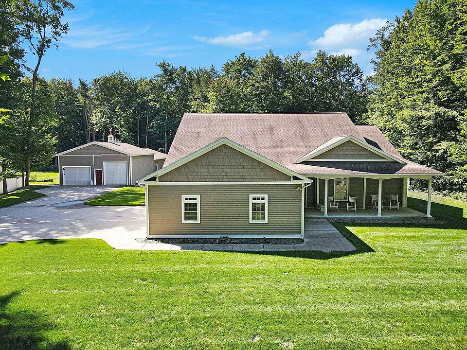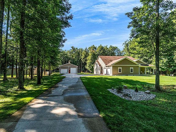 This 4 bedroom 3 bath ranch over 5000 sq feet with attached and detached garages on over 11 acres. The detached garage has heat and AC with a 9000 lb lift. The primary bedroom suite is a can't miss. Close proximity to Lake Michigan. This home features a large kitchen with a large dining room perfect for entertaining. Montague schools.