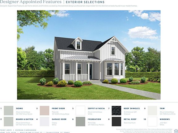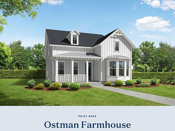 The Ostman's stunning covered porch leading to the inviting foyer reveals the lovely open concept living with views to the great room & covered porch. The well-equipped kitchen includes ample counter and cabinet space, a sizable pantry, a bright breakfast area & large center island. The first floor primary suite features a large soaking tub, glass-enclosed shower, a private water closet, and huge walk-in closet. The second floor offers a versatile loft & secondary bedrooms share a hall bath. Additional highlights include a Guest Suite above the garage w/ full bathroom. Point Hope is a new coastal contemporary community featuring beautifully landscaped bike/walking pathways, parks, playgrounds, new schools, grocery store, restaurants & more to come!