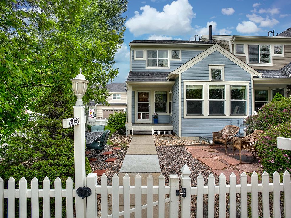 What an excellent location for this end-unit townhome! Charming Rocky Mountain Village has well-maintained homes & parks, is close to shopping, desirable schools, & has easy access to I-25. The 2 bedroom/3 bath home plus loft/office space is on a quiet street with a neighborhood park in front & green space on the east side. The living room with vaulted ceilings has a gas fireplace for cozy evenings. The roomy master bedroom includes 2 walk-in closets & a 5-piece master bath. Outside, the front yard flagstone patio is ideal for enjoying summer evenings, & a small grass yard on the side is easily maintained with a sprinkler system. Pets are allowed! A two-car attached garage is off an alleyway. Unfinished basement for future expansion. The HOA fee includes ext. maintenance, water/sewer, hazard ins. & snow removal.