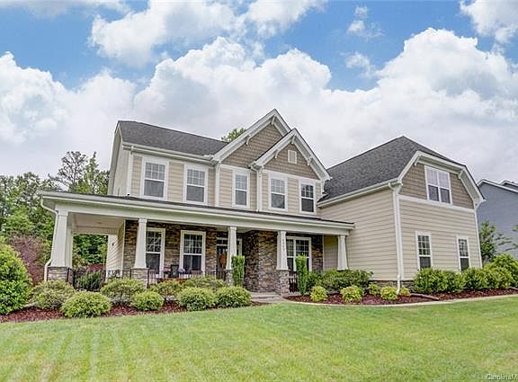Beautiful 6 year old craftsman style home located in an established neighborhood of Weddington and zoned for some of the best schools in the state - little chance of being redistricted with this one! Enjoy the private wooded backyard views from the covered porch. The 1st floor boasts a huge kitchen with granite, a large island, gas range, double ovens, beverage fridge and breakfast/sitting room. The living room with fireplace and surround sound is completely open to the kitchen. There is also a formal dining room, an office, a guest bedroom and a full bath. The 2nd floor has a versatile layout with 4 bedrooms including the master with custom closet system, 3 full baths, laundry and a large bonus/playroom prewired for surround sound. All rooms are hardwired for cable and internet. The 3 car garage with shelving and bike hooks is perfect for extra storage. Neighborhood amenities include; pool, tennis courts, basketball court, clubhouse, playground, walking trails and fishing lakes.