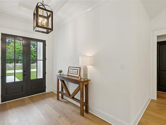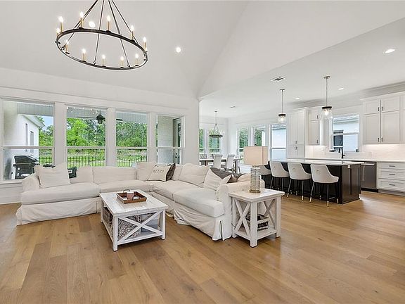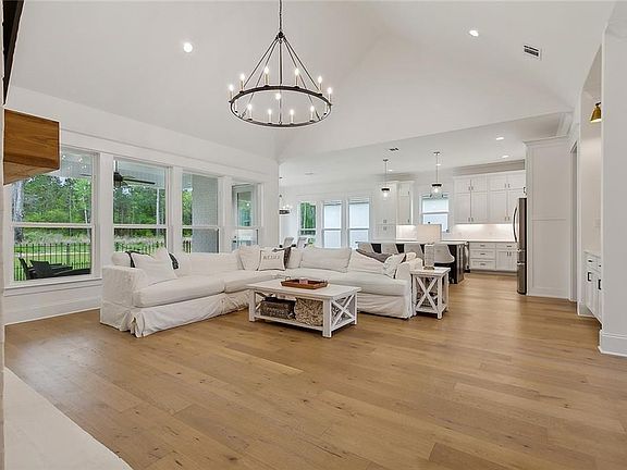Only 3 1/2 months old in Southern Oaks!! This stunning 4 bedroom, 2.5 bathroom home features elegant wood floors & designer tile throughout. The living room features a vaulted ceiling accentuated by a striking gas fireplace with a brick surround extending to the ceiling. The kitchen is both functional and stylish, with quartz counters, a generous center island, custom cabinets, and high-end GE Cafe appliances. Designer lighting illuminates every space, enhancing the ambiance. The primary suite is a retreat, showcasing a tray ceiling and a luxurious spa-like ensuite with a standalone tub, a tile shower, separate vanities, and a custom closet. Additionally, there's a small desk nook area for added convenience. Situated on a large lot, this home offers ample outdoor space. Enjoy the brand new community pool & pavilion!