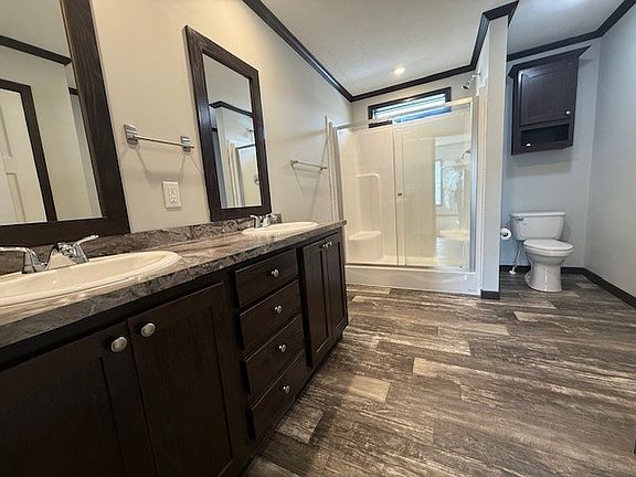 This charming 3-bedroom, 2-bathroom double-wide manufactured home boasts a thoughtful split floor plan, ensuring privacy and comfort for everyone. As you step inside, you're greeted by an open-concept living space that seamlessly connects the cozy living room with the modern kitchen. The kitchen features an inviting island perfect for meal prep or casual dining, complemented by sleek appliances and ample storage. The spacious primary suite offers a peaceful retreat with its private en-suite bathroom, while two additional bedrooms provide versatility for guests, a home office, or play areas. Natural light floods the interior through large windows, creating an airy ambiance throughout. This home presents an incredible opportunity to enjoy comfortable living in a desirable area. Don t miss out on making this lovely property your own schedule your viewing today!