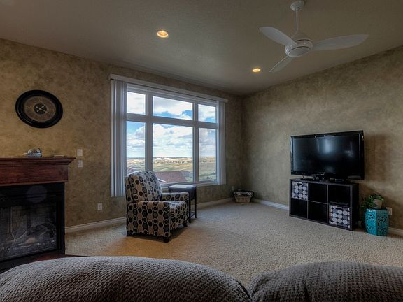 You will enjoy stunning views of the City lights in this super clean ranch style home with an open floor plan. The kitchen, dining, living room and the deck are all set up to entertain friends and family around a three sided fireplace. The lush lawn comes with a sprinkler system and drip irrigation for all shrubs. The large master suite includes crown molding, jetted soaking tub, shower, double vanity and walk in closet. The 19 by 40 foot family room has surround sound, wet bar, gas fireplace and a bonus built in office area. The fifth bedroom down is 11 by 16 feet, currently used as a children's play room. The main floor laundry room has a utility sink, cabinets and folding counter. Stained concrete patio is 10 by 32 feet and wired for your hot tub. Plenty of well organized storage places on each floor. Great location with easy access to the hospital, schools, shopping and the Hills. Call for your private showing of this immaculate, 5 bedroom, 3 bath, 3 car garage home today!