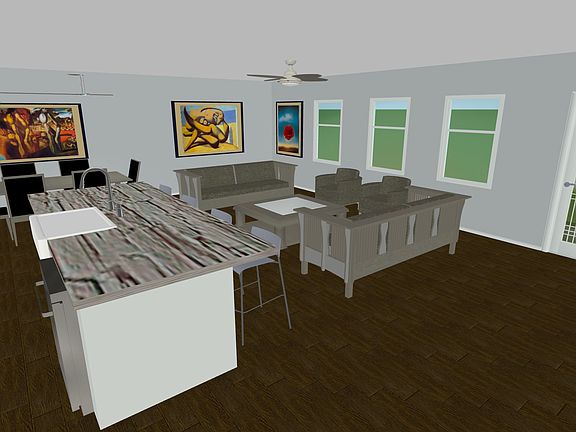 - Kitchen Features: Breakfast Bar, Eat-in Kitchen, Pantry, View to Family Room, Stone Counters, Kitchen Island, Cabinets Other, Cabinets White
