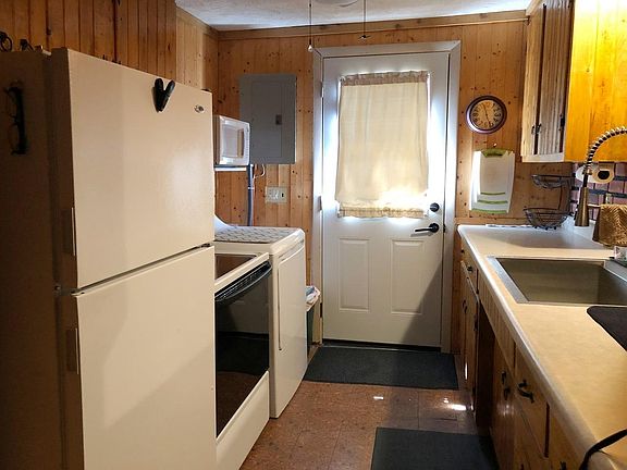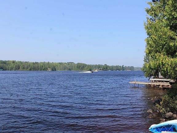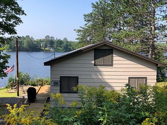 Pine Lake property with sandy shoreline! Pine lake, a fully recreational lake, 312 acres in size, offers endless hours of water activities. Within a short distance from the water, sits this seasonal 2 B/R, 1 bath cottage with kitchen/laundry, large great room with bar, dining area and living room w/wood fireplace, vaulted ceiling, and wall of windows offering an awesome view of the lake. The kitchen offers plenty of cabinetry and has a window with a view of the great room and lake. For extra sleeping or hobby room is an upper loft with knotty pine ceiling, windows on both sides allow in light and there’s storage. Included are all appliances, 2 sheds, metal carport, furniture, 2 kayaks, piers, and what’s left inside and outside. This property also has a lakeside campfire area, new lakeside deck boards and just fixed, are the pier and posts under the cottage. Immediate access to snowmobile/ATV trails and year-round access off a town road.