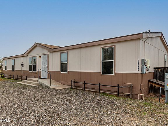Charming, well cared for mfg home on acreage. This spacious 3 bed 2 bath is a one-owner home, and sits in a quiet neighborhood surrounded by country folk and horse owners. There is plenty of room to put in a few horse corrals, park your RV, or just enjoy the privacy of owning over an acre! This house has solar power which will be paid in full at closing. The home has gas furnace, range and water heater. Very low monthly utility costs. Roof was updated last year. A nice shop out back plus two more small buildings for storage, tack room, etc. Back yard has a covered patio, fire pit and soothing water fountain. There's a car port in back for your car and handicapped entry ramp in the front of the home for easy entry. So many possibilities on this large lot.