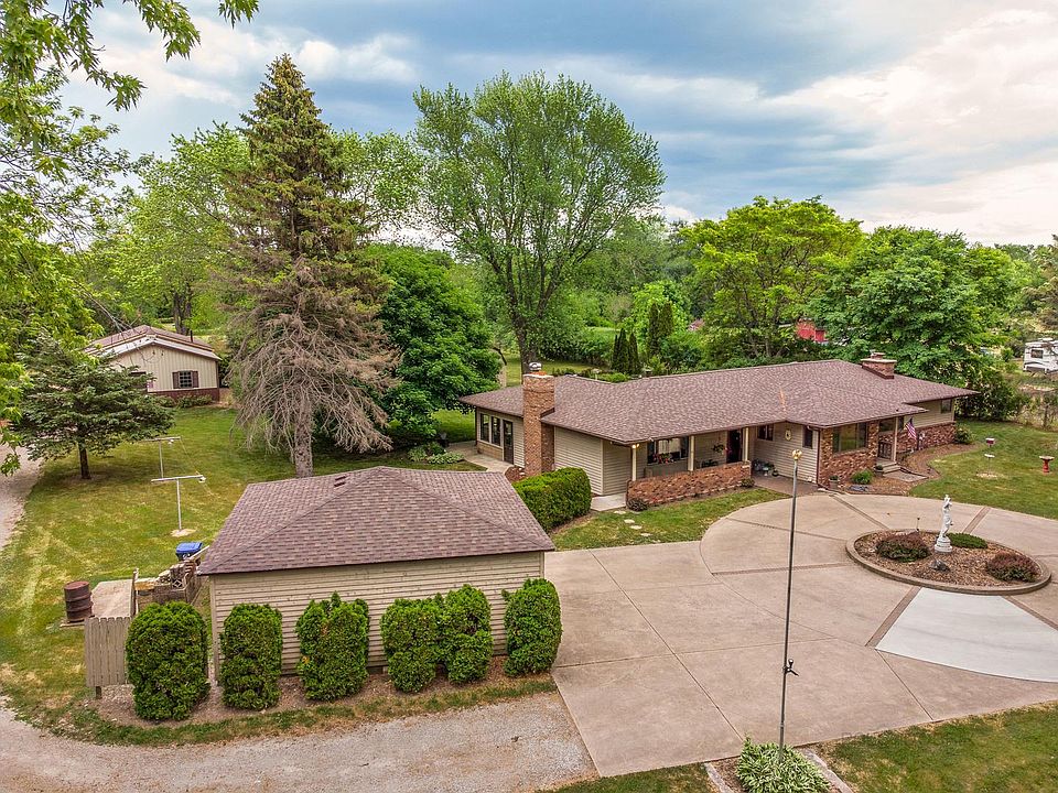 WOW! This is a RARE opportunity to own a GEM of a property! MAKE SURE TO VIEW AERIAL PHOTOS. This beautiful RANCH home has been lovingly owned and taken care of for 50 years. Beautiful front yard with pond that is stocked with catfish. It features 3 bedrooms and 1 1/2 bathrooms. The owners added the family room onto the north part of the home in the 1970s. The family room is HUGE and features cozy fireplace and direct access to large SUN ROOM! ENJOY beautiful views of nature from the sun room or large patio. Plenty of space in large master bedroom to add an ensuite bathroom. There is also a 2 1/2 car detached garage. You'll fall in love with this home beautiful 2.37 acre property. The property features a 65X30 POLE BARN great for storing cars, tools, boats etc... Part of barn is heated for a workshop. Long gravel driveway all the way from garage to pole barn. There is also a 12X12 shed on the property. NEWER FURNACES. 3 NEW ROOFS - main house, pole barn and detached garage. NEWER Anderson windows throughout. This is a property that you definitely need to check out. Schedule a showing today!