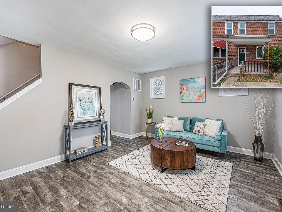 SIMPLY CHARMING END OF GROUP ROWHOME THAT'S MOVE IN READY! Property was completely renovated in 2020 and features a traditional floor plan with a spacious living room, separate dining room, designer kitchen with ss appliances, Quartz counters, and a stacked stone backsplash, upper level with 3 bedrooms and 1 full bath, a partially finished basement with laundry that's perfect for a rec area or storage, and a fenced rear patio! Pack your bags and move right in!