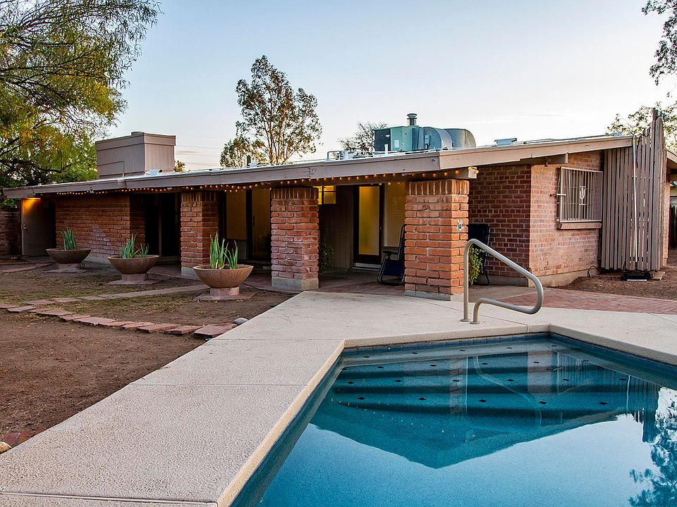 NOT FOR RENT -Midcentury modern brick home just east of Reid Park! Come for the location, move-in-ready, well maintained, stylish home and stay for the great BIG BEAUTIFUL POOL! Palomar is a nice, calm neighborhood with an eclectic mix of homes. Have fun here with an indoor planter, two fireplaces, and a family room, indoor storage off of the laundry room, AND A DARK ROOM or your new work-shop with its own cooler! Shady covered patio and giant back yard - this home is just too cool! Minutes from the University of Arizona, Downtown & Airport, and a wide range of shopping options. NEW Pex plumbing in 2017 and Electrical update; 25 new GFCI outlets installed in 2016!