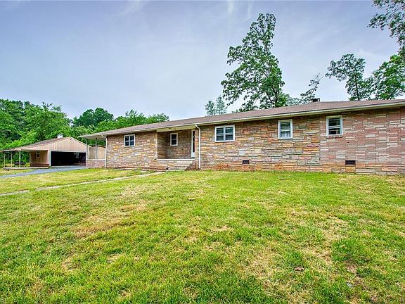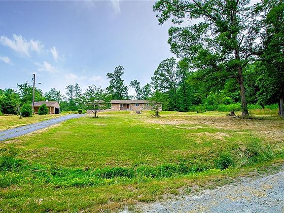 Rambling stone ranch located on just shy of 7 ACRES of useable land in Randleman! Home features large living room with real pine paneling, large bright kitchen, split bedroom floor plan, screened porch, detached double garage and work area, newer wood furnace for extremely low utilities, hardwood flooring through much of the home. Beautiful setting with circle drive.