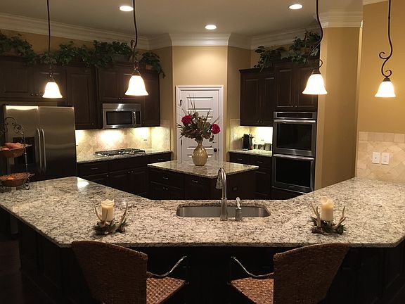 - KITCHEN DESC: Eat In Kitchen, Pantry, Crown Mold, Smooth Ceiling, Granite Countertop, Wood Floor, Kitchen Island, 9? Ceiling, Recessed Lighting, Walkin Closet