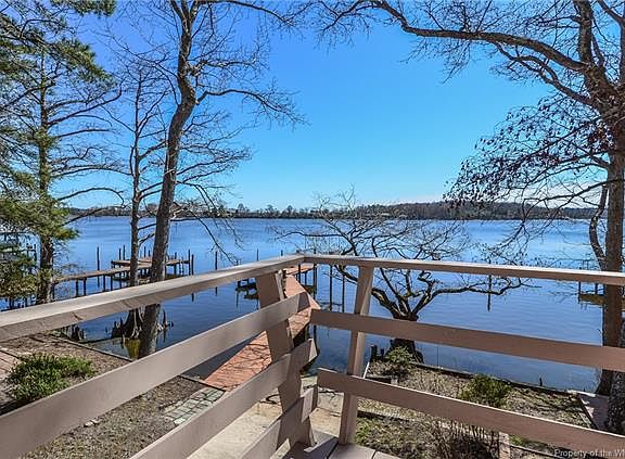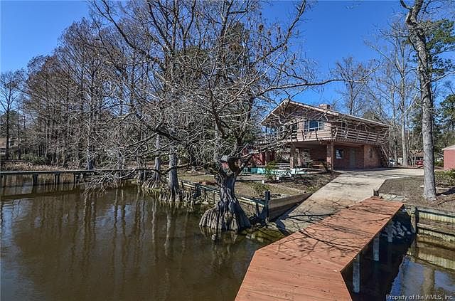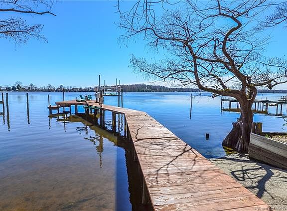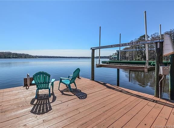 Let your worries and cares drift away at this waterfront retreat in Chickahominy Haven! This home has its own boat ramp and is located on a double lot with ample room for outside fun! Soak in the breathtaking sunrises from your private dock (with boat lift & 2 jet ski lifts) or enjoy your gorgeous water views from your balcony & porch & enjoy an evening breeze! You can grill and entertain guests on your waterfront patio or treat them to an afternoon of boating and fun in your backyard on the River! You will love your 2-car garage and detached office/cabin. This Post Modern Beauty has been lovingly updated with new paint (inside and out), refinished hardwood floors, new stainless steel appliances, new flooring in the Kitchen & Family Room -and more! Upstairs on main level you will love the views from the Kitchen & Great Room that has a gorgeous beamed wood ceiling & an inviting fireplace. There are 3 bedrooms/1.5 baths & an enclosed porch. Downstairs is a spacious Family Room with fireplace & full bath to wash off after a day of fun on the water! Golf Cart friendly community! Optional community association ($75/yr.) with neighborhood beach, picnic areas, playgrounds & boat ramp!