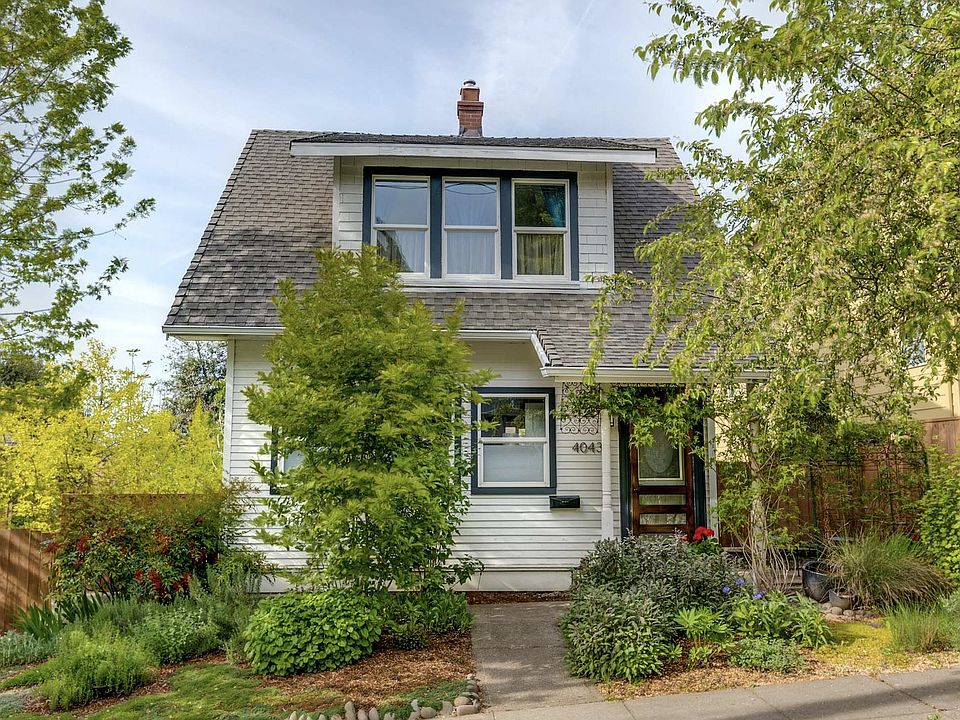 Beautiful, bright & well cared for Cottage w vintage charm, classic features & gorgeous outdoorS. Dbl pane windows, high ceilings, wood floors & ample storage. French doors open to covered deck, bucolic yard & garden. Fully fenced w private feel & established landscaping. Brand new water heater & many updates. Light & bright basement w full bath & exterior access. Quiet tree lined street. [Home Energy Score = 4. HES Report at https://rpt.greenbuildingregistry.com/hes/OR10098743]