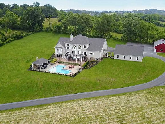 YOU HAVE TO SEE THE AMAZING VIEWS! Set upon 15 acres of unspoiled beauty overlooking the rolling foothills of Catoctin Mountain, this sprawling, sophisticated dream estate in unrivaled in its combination of luxury, opportunity, investment and convenience, but the views will take your breath away. Offering all the modern luxuries that fuse comfortable living with a savvy entertainer's dream, this thoughtfully-designed custom build with sweeping exterior views has nearly 10,000 square feet of seamlessly-flowing rooms. Family and friends will undoubtedly gather around the dashing stone fireplace in the great room and take in the sight of the serene valley through the two-story arched picture windows. An open layout leads to the bright, stunning gourmet kitchen fitted with every enjoyable amenity and walk-out access to the primed-for-leisure sundeck. Continuing throughout the resplendent main level, a formal dining room, inviting living room with a cozy fireplace, and stately office or billiards room all tell a tale of modern warmth and serious design. The truly luxurious master suite completes the calming nature of this floor, offering a comfortable and restful retreat space. Your overnight guests will be thrilled to choose from one of four additional bedrooms and four full baths on the upper level, where vivid exterior views carry on. In the lower level, the entertaining opportunities are unrivaled, with an additional guest suite option, two extensive recreation rooms, a workspace, a home gym, and access to all the alluring outdoor amenities on site. This home is truly a haven for those who celebrate the outdoors as living space. Simply step out and experience all the appeal of an open-air lifestyle. Go take a dip in the heated swimming pool. Cozy up near the gorgeous outdoor stone fireplace in the covered pool pavilion or nearby spa. You might develop the desire to fire up the grill on the covered patio with direct access to the lower level recreation room, or perhaps you'll spend the evening over by the firepit while enjoying a panoramic sunset. For those who need space for a trade or hobby, this house has options aplenty. The charming barn is a recently built, fully-enclosed space for a home business or storing equipment or additional cars. The four-car garage comes with built-in storage and an additional loft space that could be creatively finished as a tucked-away sanctuary. When venturing away from home base, there is easy and convenient access to local shopping, dining, and major roadways. This remarkable estate is just three miles from downtown historic Leesburg, Morvin Park Manor, and within minutes of many of Virginia's wonderful breweries and wineries. Whether you are bringing Board members over for a retreat, hosting holidays for multiple generations, or simply having neighbors over for dinner, Beechnut Acres encourages living - and loving - life to the fullest.