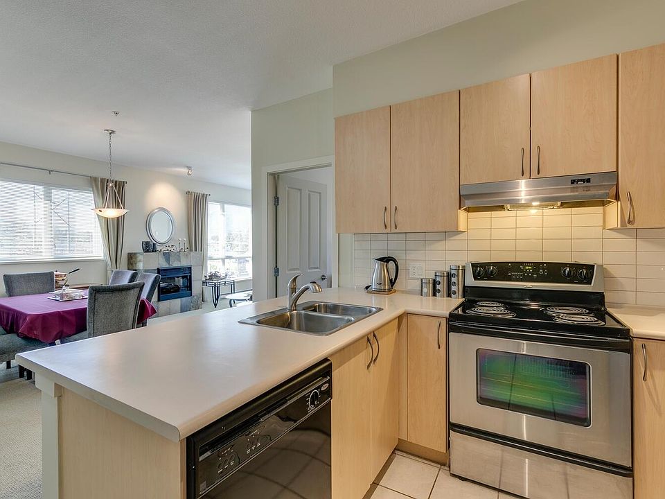 Bright and spacious 3-bedroom, 2-bathroom corner-unit condo with panoramic mountain views from every window. The sun-filled open layout features a cozy fireplace, private balcony, and a convenient in-suite pantry/storage room. Enjoy living on one level with no stairs. Convenient elevators brings you to your condo, includes 2 parking spots and access to the building's fitness centre and common meeting room. Located in a vibrant neighbourhood, you're just steps from shops, restaurants, schools, and transit. Perfect for anyone seeking space, comfort, and a walkable lifestyle in a scenic setting.