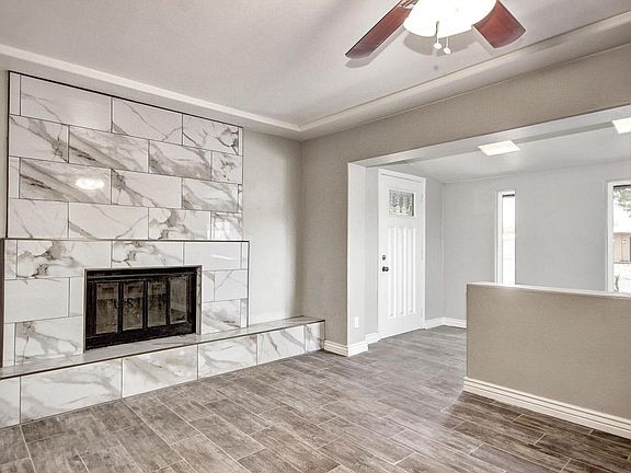 Beautiful 3 bed 2 bath brick home on corner lot! Spacious floor plan all new wood looking ceramic tile flooring & new baseboard throughout. New carpet in all bedrooms. Stunning fireplace in living room. Kitchen features all new cabinets with new gorgeous granite counter-tops. Seller will provide new stainless steel appliances including gas range, OTR microwave & dishwasher with accepted offer. New Brushed Nickel plumbing fixtures, light fixtures, ceiling fans & door hardware throughout. New vanity cabinets, new mirrors & new tile surrounds in both bathrooms. New dual pane windows! Large fenced front yard with deco rock landscaping and trees. Garage has epoxy flooring. Backyard has vehicle access & nice shed. Come see it today! Agent/Owner.